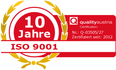 Die langjährige Zertifizierung unterstreicht das kontinuierliche Engagement für Qualität, strukturierte Prozesse und nachhaltige Weiterentwicklung im Unternehmen.
